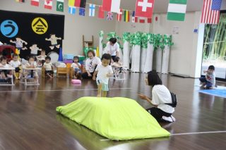 やんちゃさんは、ボールを具材やたこ焼きに見立てて、たこ焼き屋さんごっこをして遊びました!たこ焼きに必要な、具材を探し、たこ焼き器の中に入れて、「おいしくな~れ!」とおまじない☆美味しそうなたこ焼きが出来上がり、出来たたこ焼きはお家の方へ、召し上がれ!