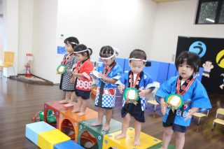 最後の演目が終わり、閉会式です!練習から本番まで頑張ってきた子ども達に、ご褒美の金メダル授与です!金メダルをもらうことは、子ども達の自信に繋がり、これからグッと成長していくと思います!