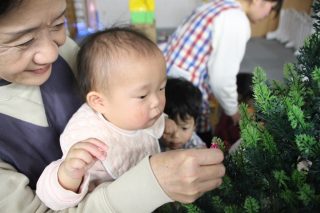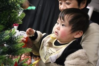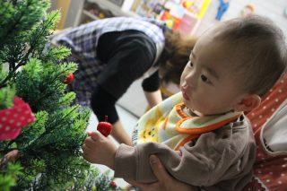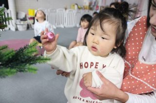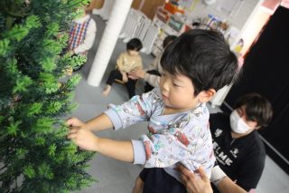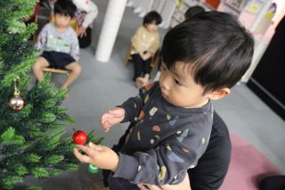 お祝いをした後は、クリスマス会に向けて、みんなでクリスマスツリーへの飾り付けをしました🎄好きなオーナメントを選び、ツリーに飾っていきます!見る見るうちにオーナメントがたくさんつき、ステキなツリーに大変身!最後に園長先生が電飾を付けて…完成!点灯式です✨キラキラ輝く、クリスマスツリーにうっとり💛この日はクリスマスツリーを見ながら、みんなでお給食を食べました🎵